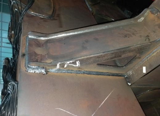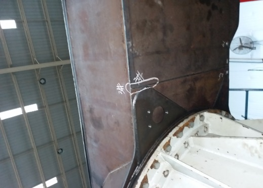 如图 12 所示为 20000 次可靠性试验后分别追加 7200、7800、9700 次最大起重力矩工况的母材开裂情况。共计完成疲劳加载 24700 次,可靠性试验在试验大纲评审合格判定次数 20000 次循环范围内未出现关键焊缝开裂,车架试验合格。