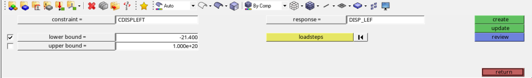 创建位移约束(对应满足扭转角要求),创建目标函数为整体质量最小,如图 7 和图 8 所示: