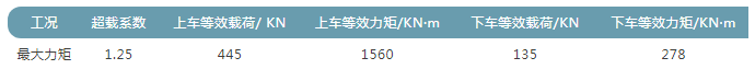 取对车架结构影响最恶劣工况——1.25 倍最大起重力矩吊载,分别在前、后、左、右、左前、右前、左后、右后 8 个方位进行加载,将上车重量(转台、大臂、吊重)、下车重量(车桥、轮胎、驾驶室、车架等)转换到中回中心的垂直力及力矩,具体如下表所示: