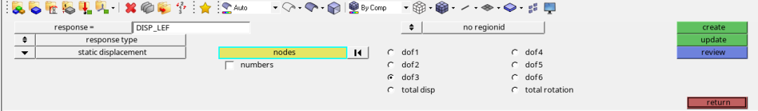 分别创建整体质量响应及相关节点位移响应,如图 5 和图 6 所示: