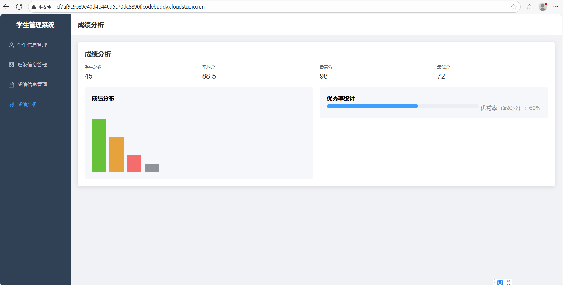 为了更好的演示借助于腾讯云 Lighthouse MCP Server 自动部署本地项目到腾讯云 Lighthouse 服务器的操作,这里我们更改了我们的需求描述:【你是一个前端开发,我需要开发一个学生管理系统,包含以下功能:学生信息管理、班级信息管理、成绩信息管理、成绩分析等功能,现在,帮我实现吧。】并重新生成了一个前端代码