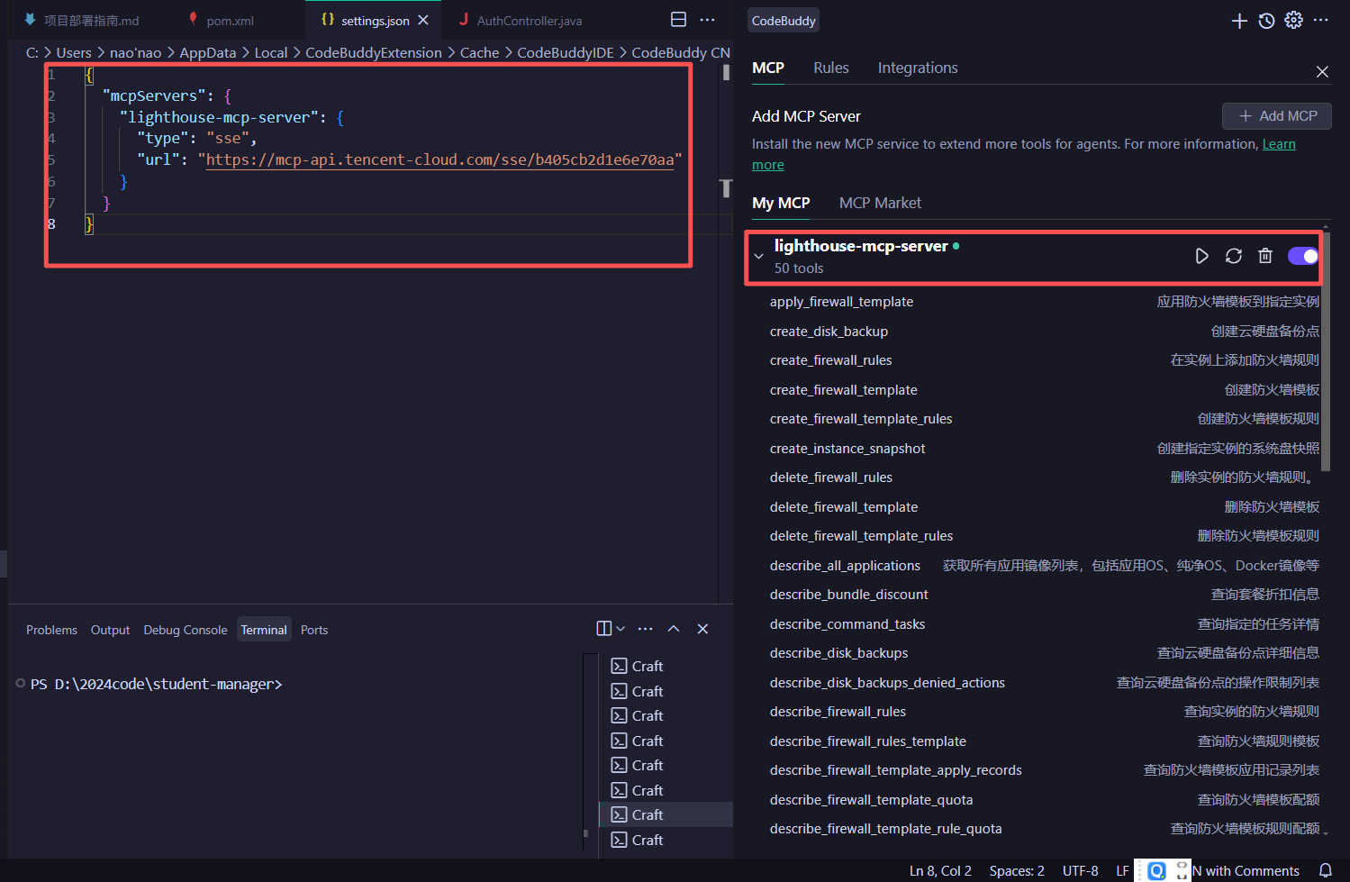 下面我们将通过 CodeBuddy IDE 国内版实现学生管理系统,并通过调用 MCP Server 一键部署到腾讯云 Lighthouse。