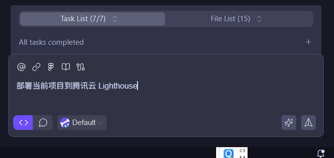 下面我们正式来通过 MCP Server 部署我们当前的学生管理系统到腾讯云轻量应用服务器,在 AI 对话框中输入【部署当前项目到腾讯云 Lighthouse 】