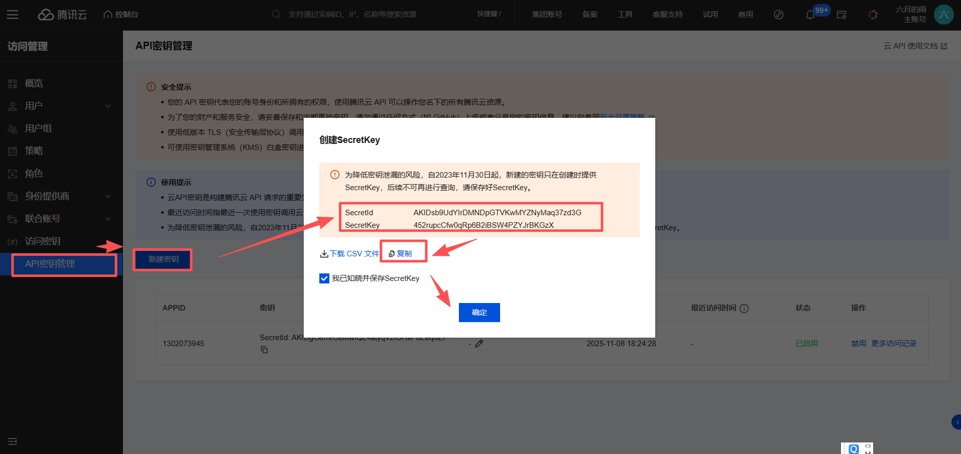 获取 SecretId、SecretKey