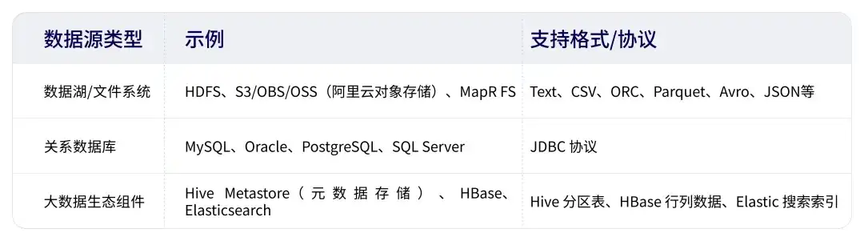 你是否遇到过这样的场景?企业的数据分散在 ERP 系统(存储订单)、HDFS(存储生产日志)、Oracle 数据库(存储客户信息)、S3 对象存储(存储产品图片)……