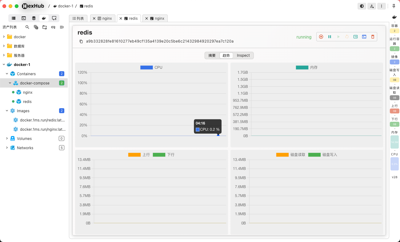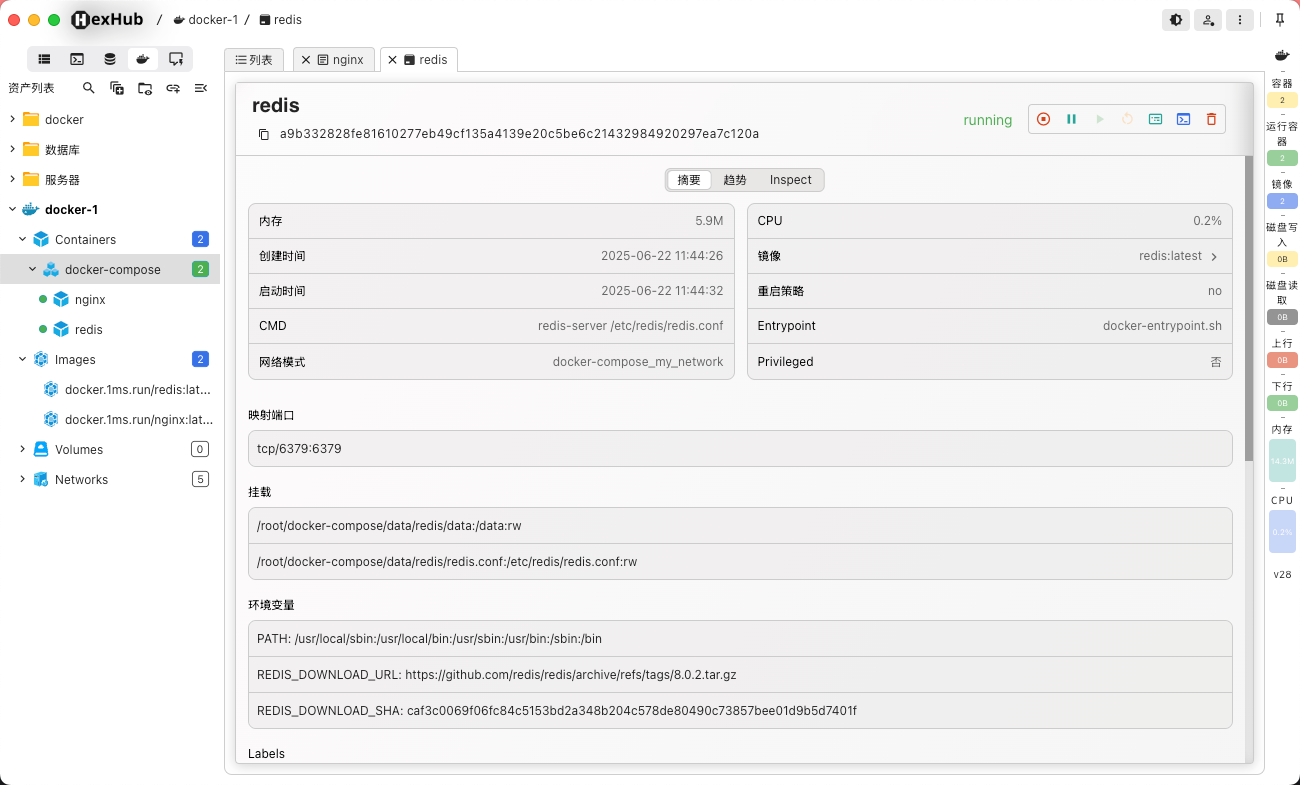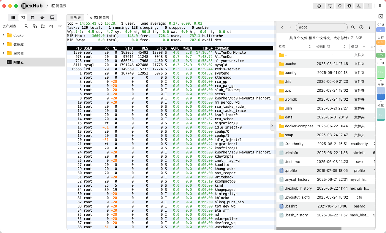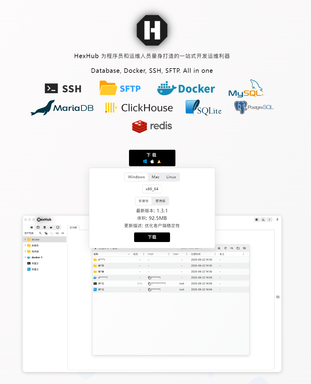 HexHub 是一款专为程序员和运维人员设计的一站式开发运维工具,它将数据库管理(Redis、MySQL、ClickHouse、MariaDB、PostgreSQL、SQLite)、SSH、SFTP、Docker 面板管理功能等核心功能无缝集成于统一、高效的桌面 GUI 平台(支持多平台 Windows、Mac、Linux)。它旨在提供一个高效、便捷的开发和运维环境,帮助用户更轻松地管理和操作各种开发和运维任务。