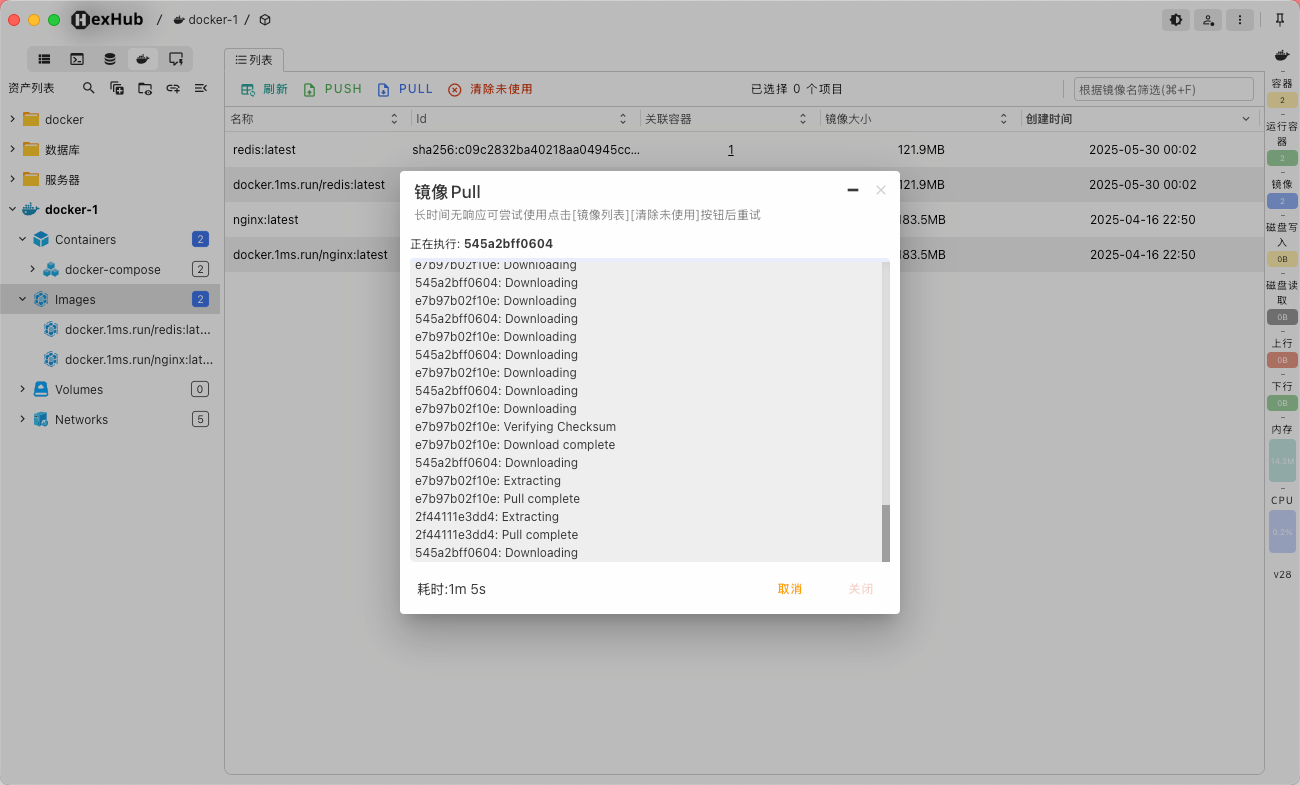 丰富易用的 Docker 面板管理功能,支持自定义镜像仓库,能够透过 SSH 连接远程 Docker 服务器,支持镜像导入/导出、SSH 代理连接、实时面板、容器终端、容器日志、容器指标趋势等。