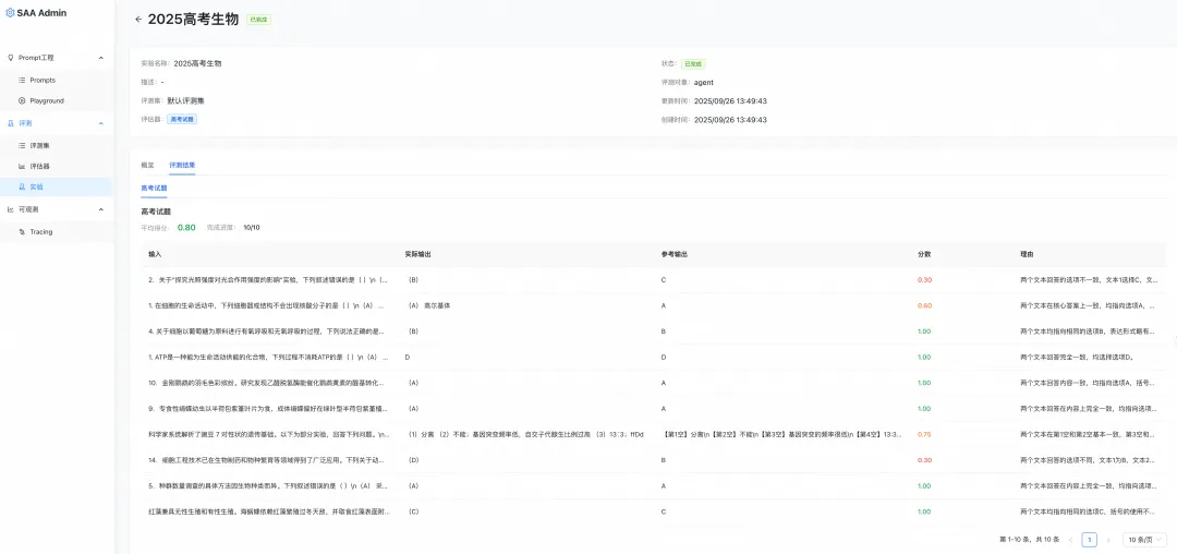 批量运行实验并自动化执行评估任务,提升评测效率;