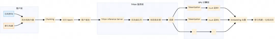 在突破 embedding 的性能瓶颈之后,对整个语义索引框架进行改造也是非常必要的。需要转为调用远程 embedding 服务,并实现数据读取、chunking、Embedding 请求、结果处理/存储等环节的充分异步和并行。