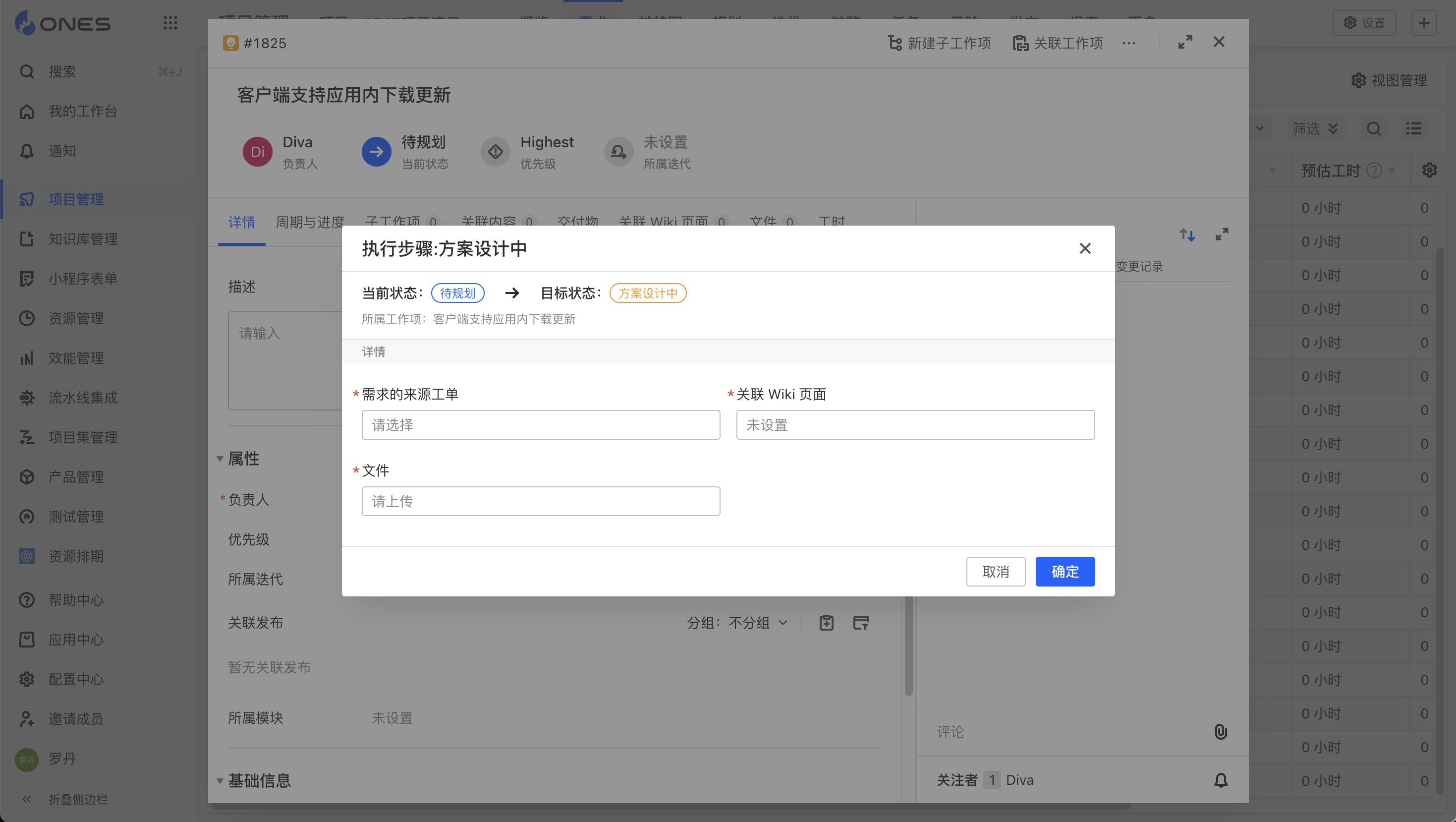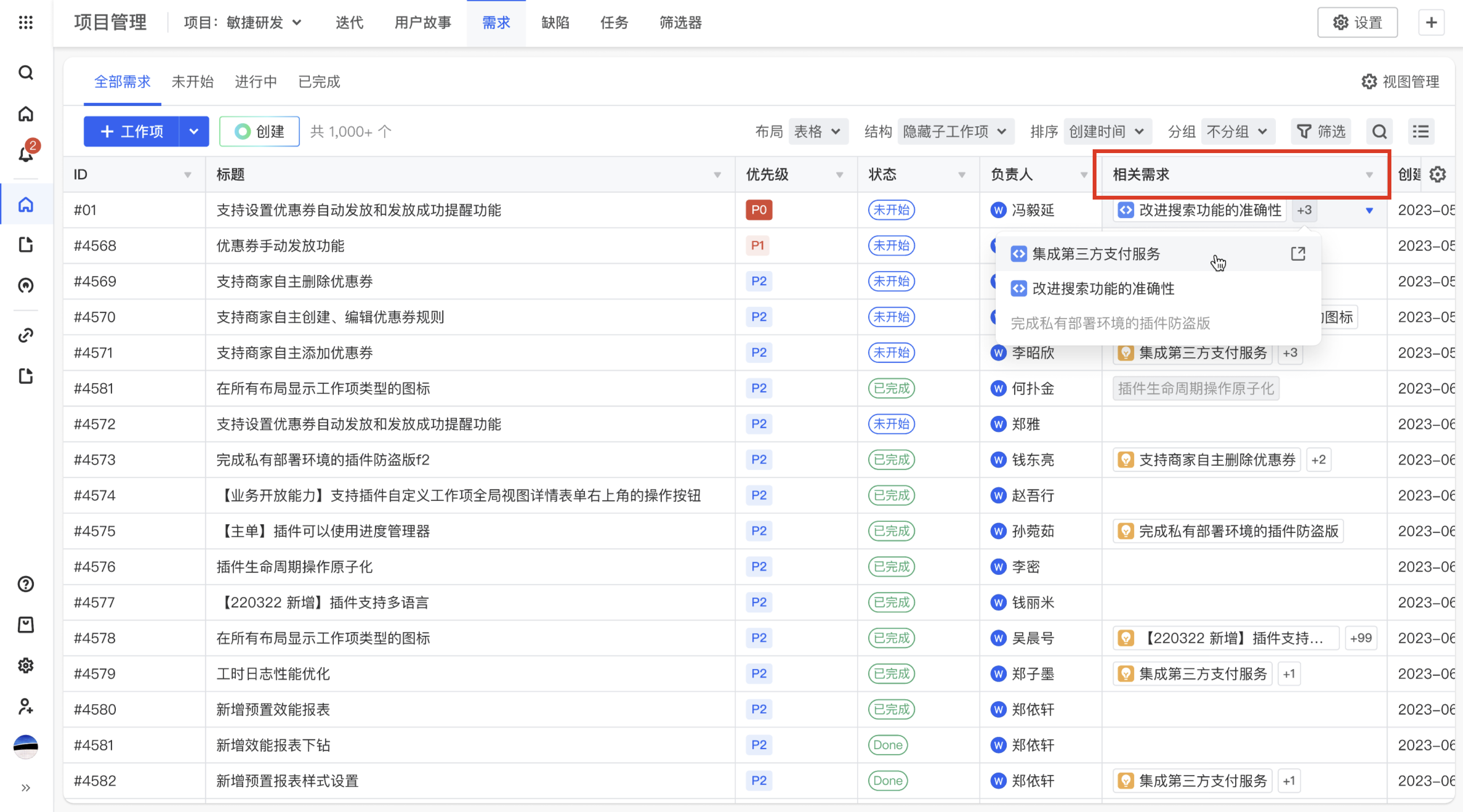 支持上下级工作项间自动触发条件校验与流程分支,例如:当所有子任务完成后,父任务的状态可自动更新为「可验收」,实现流程的自动化推进。