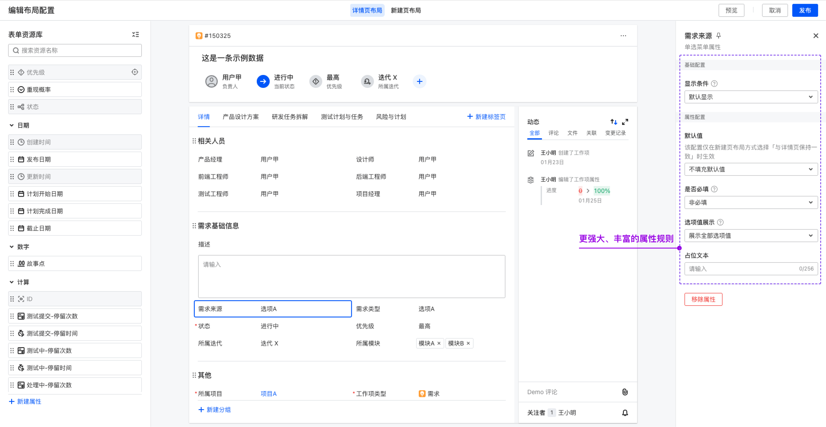 2. 更灵活的工作项属性规则,实现表单随业务流变化