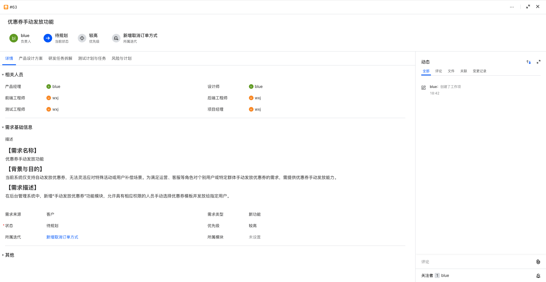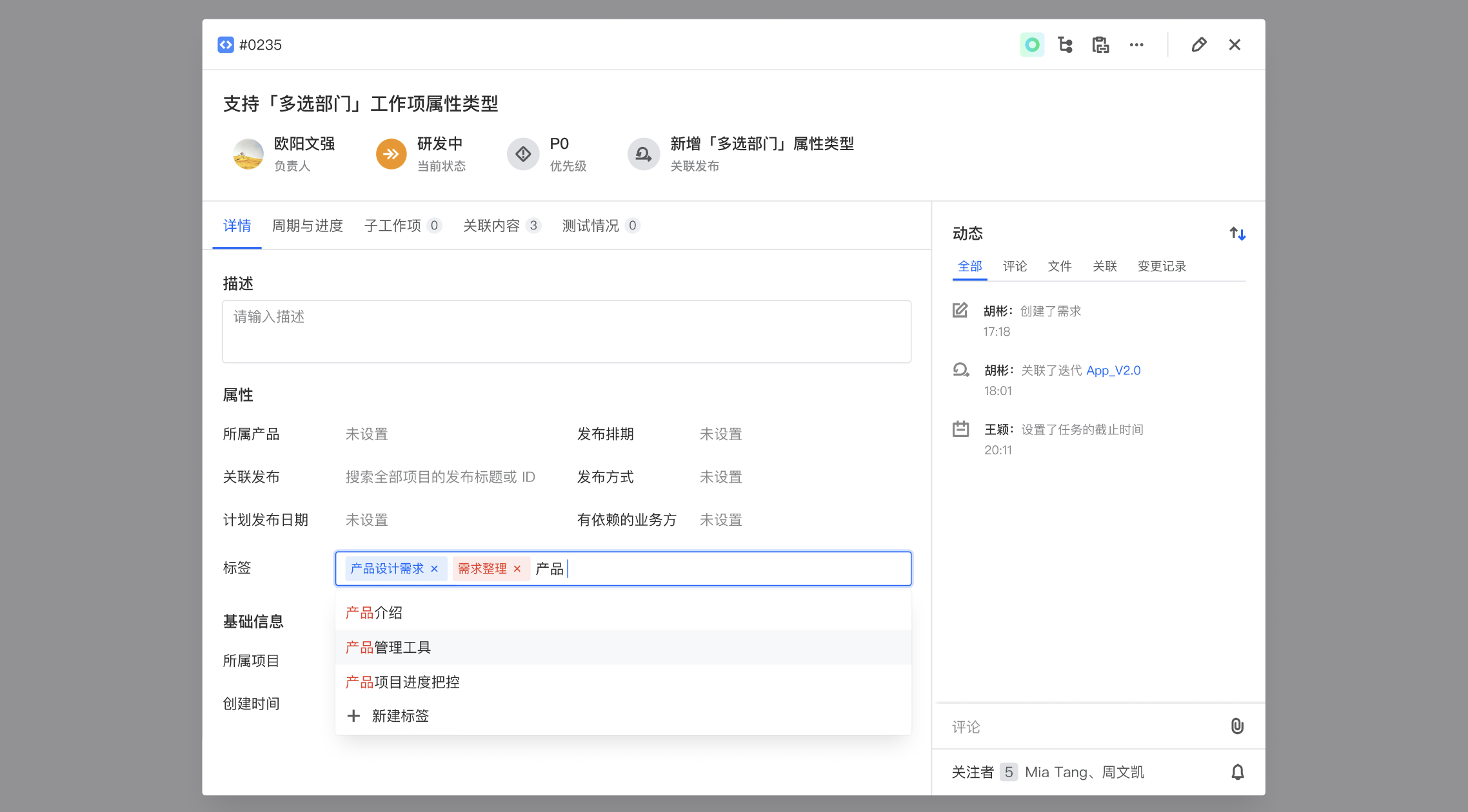 无论是产品侧、研发侧还是项目管理者,都能通过标签快速筛选、分组并追踪进展,从而实现更灵活、更自主、也更贴合习惯的信息管理。
