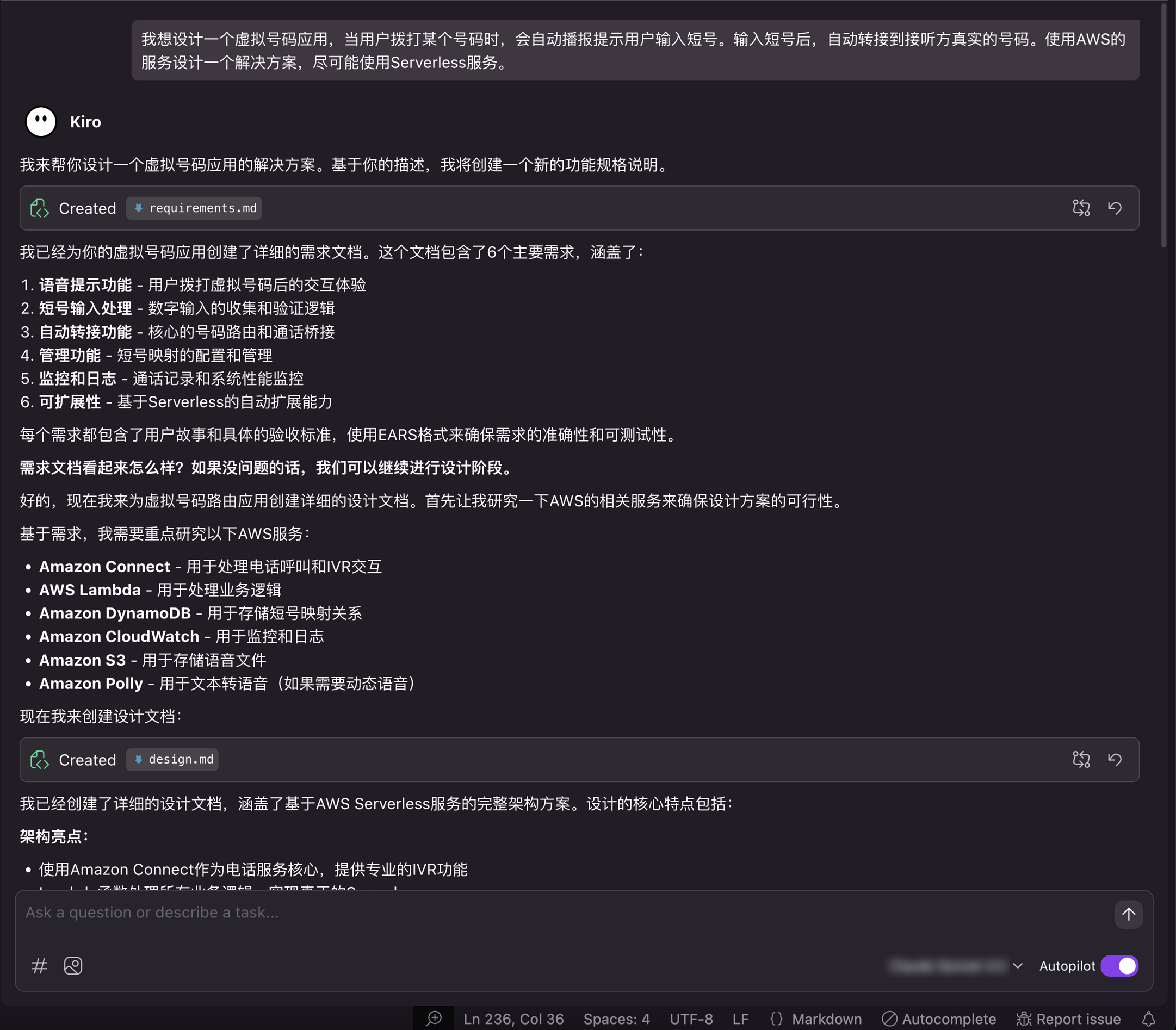 在虚拟号码开发的过程中,Kiro 的表现可以用“惊艳”来形容。