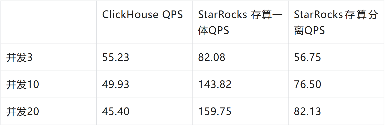 且在相同并发负载下,StarRocks 存算分离场景性能仍优于 ClickHouse。