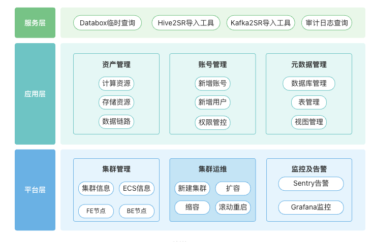 集群服务模块:集成 StarRocks 运维与业务支撑所需各类工具,打造 “一站式服务平台”,大幅降低跨系统操作成本,核心功能包含:
