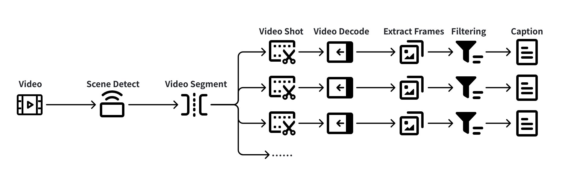 链路分散:分镜、视频解码 &抽帧、过滤、caption 生产等步骤往往由不同脚本实现,难以统一管理