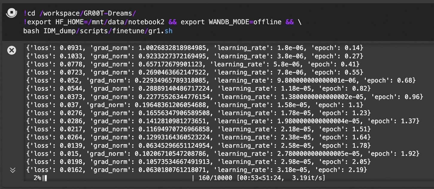 # Print the tyro config print("\n" + "=" * 50) print("GR00T FINE-TUNING CONFIGURATION:") print("=" * 50) for key, value in vars(config).items(): print(f"{key}: {value}") print("=" * 50 + "\n")