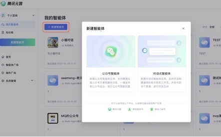 腾讯元器平台最大优势在于其低门槛特性。该平台将复杂的 AI 能力封装成易用模块,让创作者无需编程背景,通过简单的“搭积木”方式就能构建自己的智能体。目前,元器智能体平台支持公众号智能体和对话式智能体两种创建方式:公众号智能体创建模式下,公众号运营人员可以通过拉取公众号文章来构建知识库,搭建智能回复智能体,更有定制性;对话式智能体创建模式支持调用通用知识库和工作流,搭建对话类智能体,更灵活。