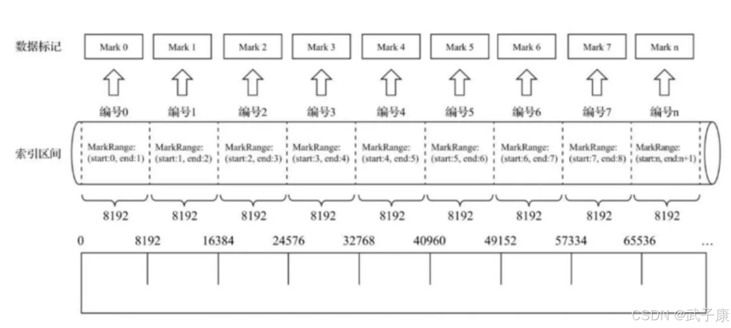 数据标记和索引区间是对齐的,根据索引区间的下标编号,就能找到数据标记-索引编号和数据标记数值相同