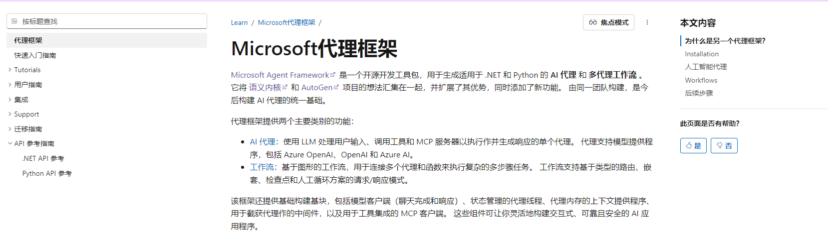 在线文档:https://learn.microsoft.com/en-us/agent-framework