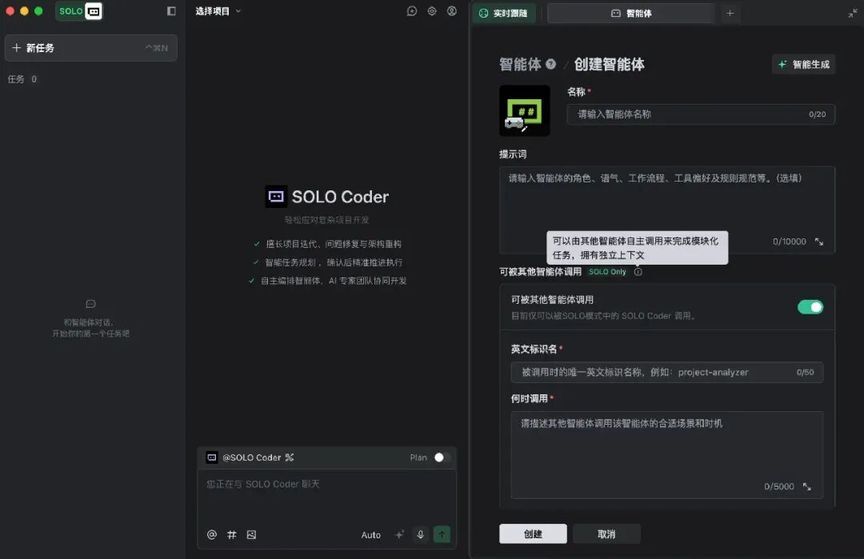这些智能体也是可以自己创建的,点「创建智能体」就能创建了。