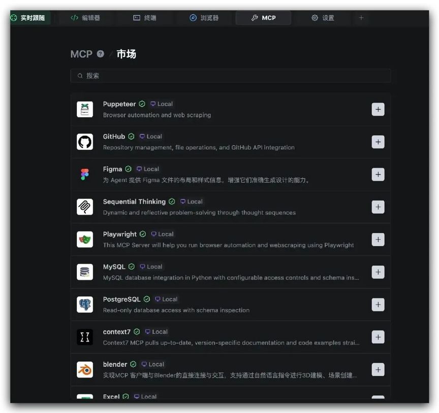 广场能搜素到非常多好用的 MCP,配置也很简单相对 Cursor 来说。
