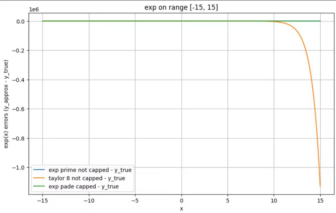 exp pade 方法:初版高精度的 exp 模拟方法,强制启用了下限和上限的 clamping。代号为 mod 1。