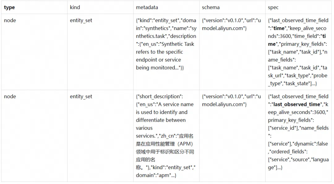 -- 精确查找特定EntitySet的完整定义.umodel | where json_extract_scalar(metadata, '$.name') = 'apm.service'| limit 1