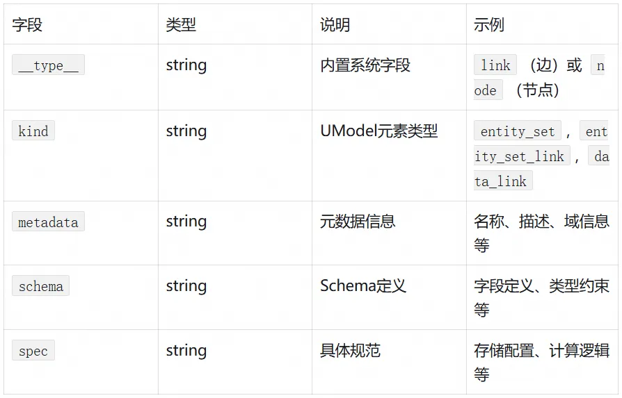 节点类型,即 label 信息,在 UModel 的元数据图查询中,为 <domain>@<kind>,例如 apm@entity_set节点 ID,即 __entity_id__ 信息,在 UModel 的元数据图查询中,为 kind::domain::name,例如 entity_set::apm::apm.service