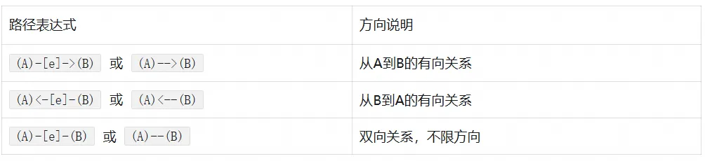 图查询路径(PATH)使用 ASCII 字符描述关系方向: