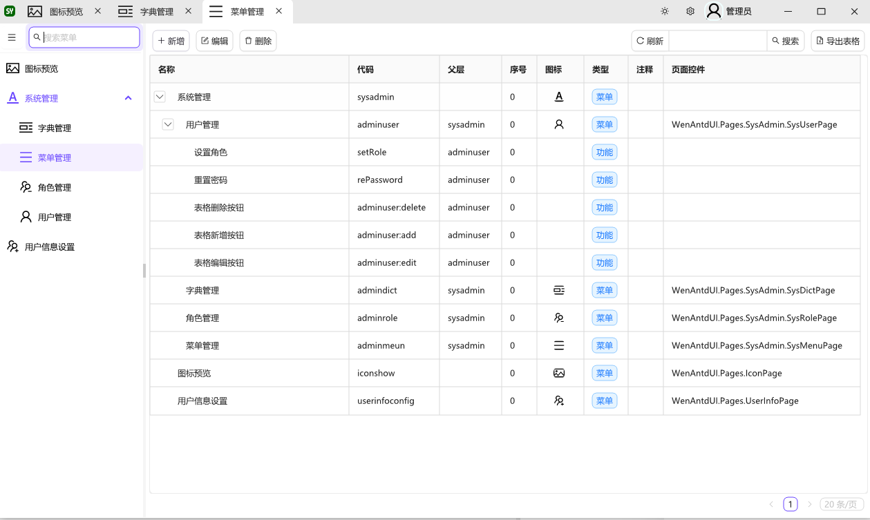 WenAntdUI-Admin 是一个基于 AntdUI 构建、基础、现代化的 WinForm 管理系统,基于 Apache-2.0 License 开源,项目包含:AOT 发布、字典管理、用户管理、菜单管理、权限管理、用户设置等功能。内部封装了很多常用组件,包含 AdminTable 等通用组件。