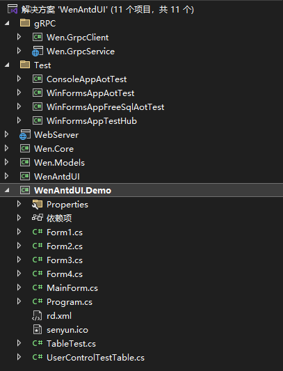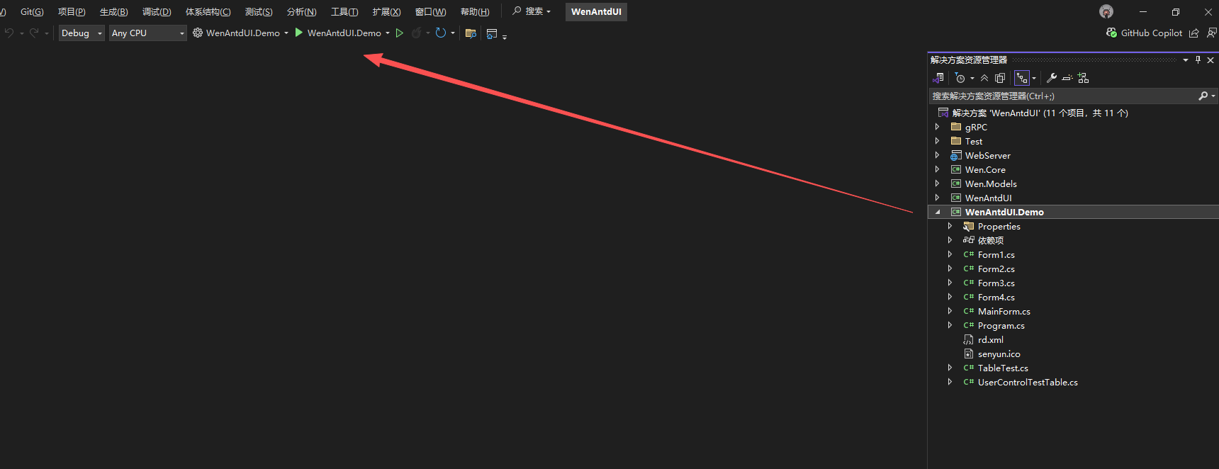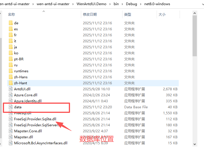 首先我们设置 WenAntdUI.Demo 为启动项目,首次运行会自动初始化 SQLite 数据库,并且在运行目录下创建一个 data.db。