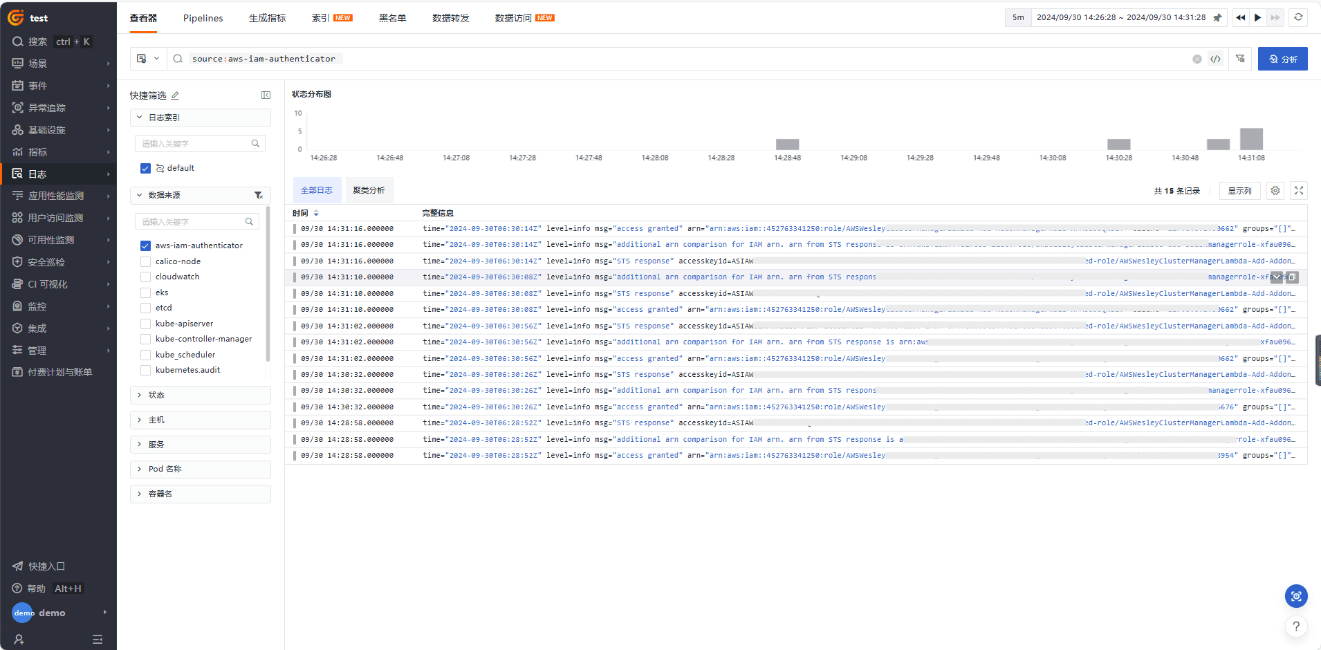 绑定完成后有新的集群日志即可上报观测云。