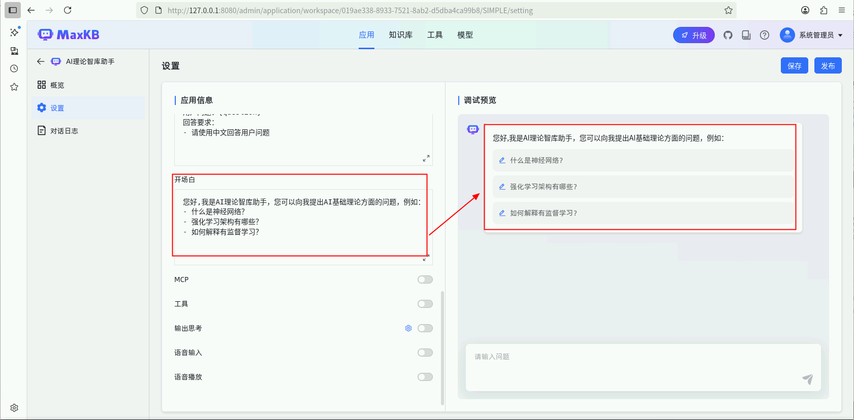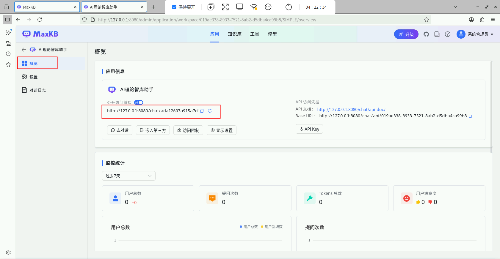发布 AI 理论智库助手应用,浏览器测试智能对话。