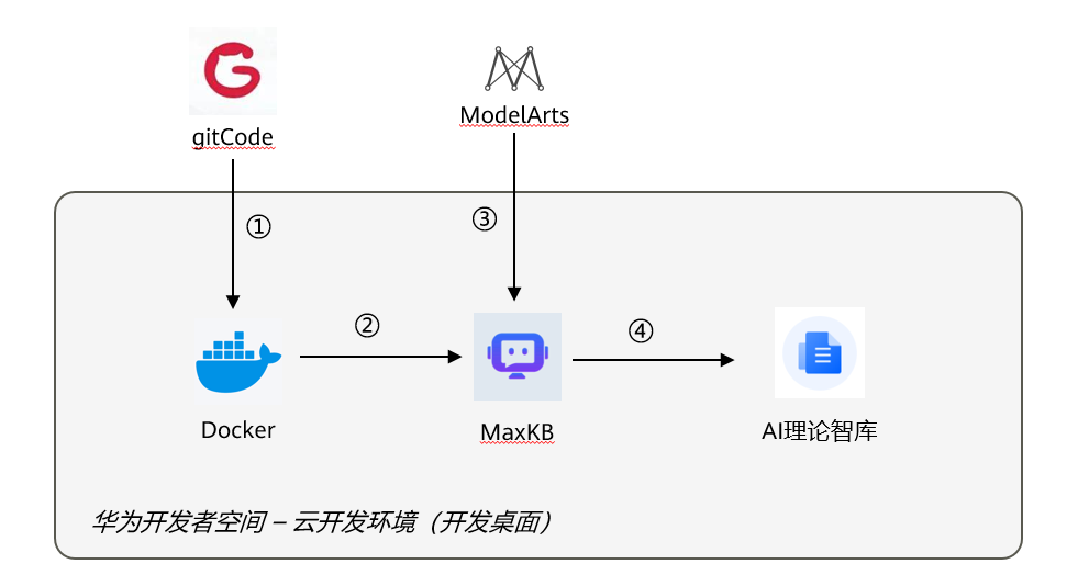 本案例将基于华为开发者空间 - 云开发环境(开发桌面),以 Docker 的方式部署 MaxKB 服务,配置以华为云 MaaS 平台的 DeepSeek-R1 模型商用 tokens,快速搭建 AI 理论智库。