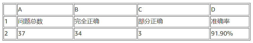 经过前期多轮沟通与调优后,最终版本在客户测试后,问答准确率达到了 91.9%,此结果已超过客户测试前的预期(此前客户要求准确率在 80%以上)。测试结果统计如下: