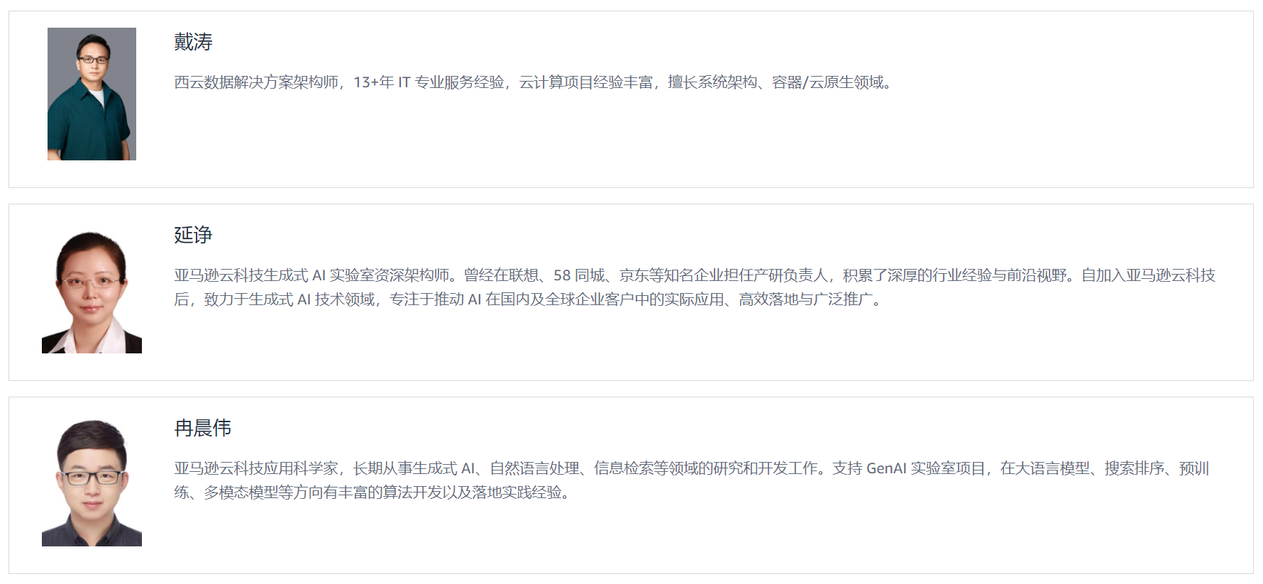 *前述特定亚马逊云科技生成式人工智能相关的服务目前在亚马逊云科技海外区域可用。亚马逊云科技中国区域相关云服务由西云数据和光环新网运营,具体信息以中国区域官网为准。