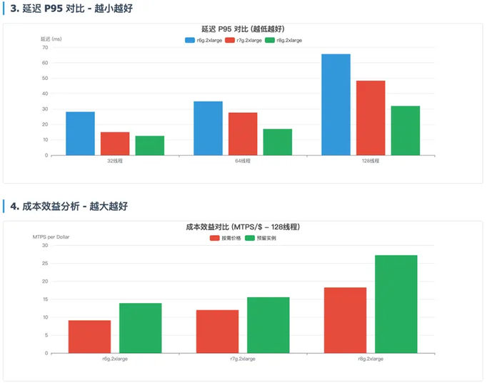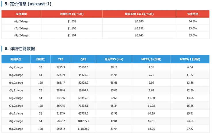 r8g.2xlarge TPS 提升 113%: 最新一代处理器,在 128 线程高并发场景下表现优异,测试结果为 27.22 百万 TPS/$;