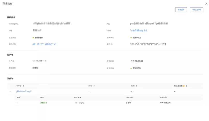 另外我们还基于消息轨迹提供了消息全链路轨迹追踪功能。如下图所示,用户能够在控制台上看到完整的消息生命周期、从消息的发送、存储、到消费,整个链路都能被完整地记录下来。