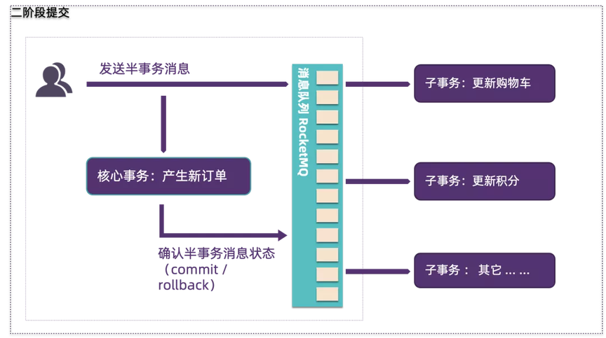 消息队列 RocketMQ 的分布式事务消息广泛地应用于阿里巴巴核心交易链路中,通过分布式事务消息,实现了最小事务单元;交易系统和消息队列之间,组成一个事务处理;下游系统(购物车、积分、其它)相互隔离,并行处理。