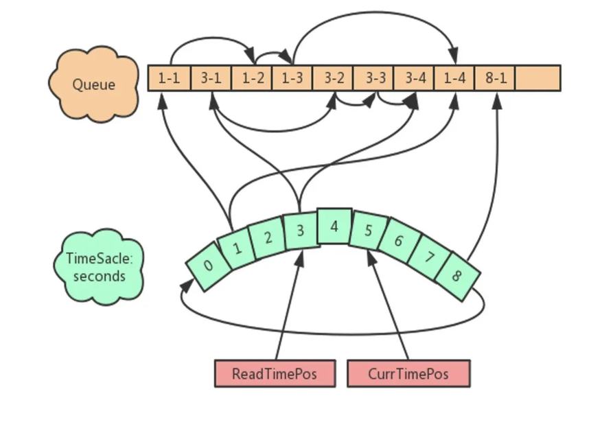 如下图所示,我们基于时间轮设计并实现了支持任意定时时间的秒级精准定时消息,同时满足以下特性: