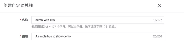 我们来到事件总线 EventBridge 控制台,创建一个自定义总线 demo-with-k8s。