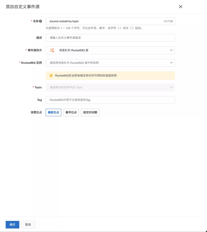 我们为该自定义事件总线添加消息队列 RocketMQ 版的自定义事件源。