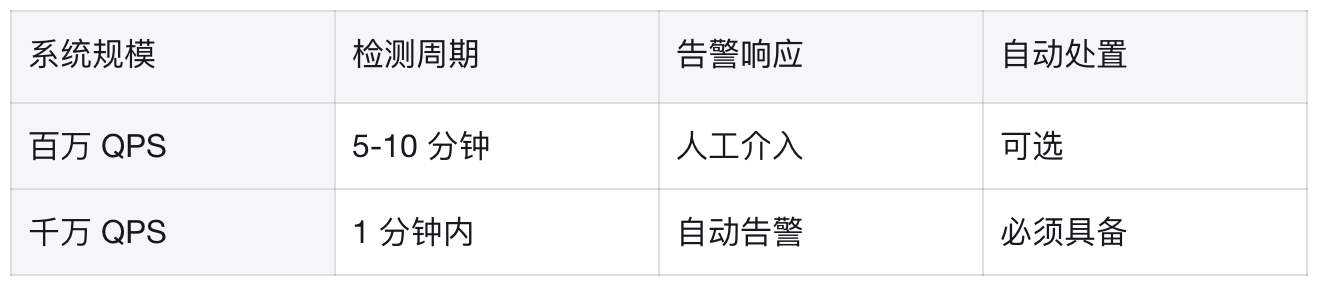 这不是简单地把百万 QPS 的方案"做大 10 倍",而是需要从被动应对转变为主动防御——这正是规模带来的架构思维转变。