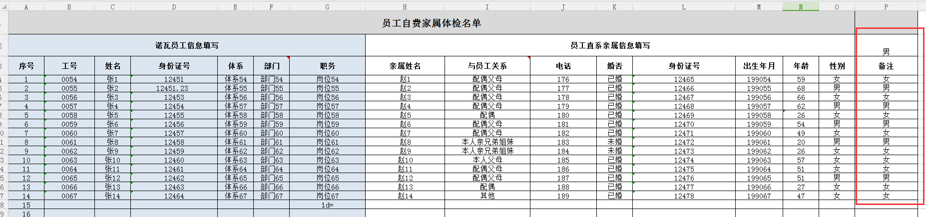 输出结果为:[number:3.0, text:u'0056', text:u'张 3', text:u'12453', text:u'体系 56', text:u'部门 56', text:u'岗位 56', text:u'赵 3', text:u'配偶父母', number:178.0, text:u'已婚', text:u'12467', number:199056.0, number:66.0, text:u'女', text:u'女']