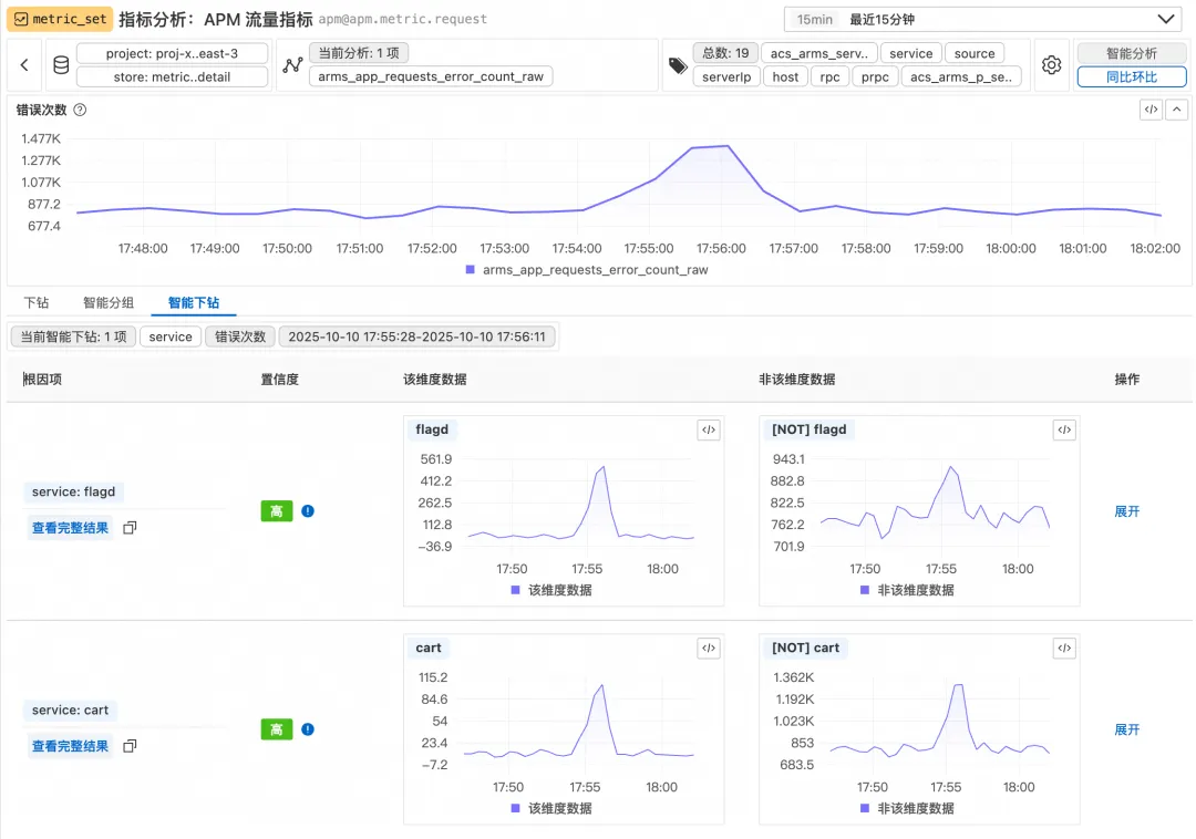 智能下钻是 MetricSet Explorer 最具技术含量的功能,它能够自动进行根因定位。