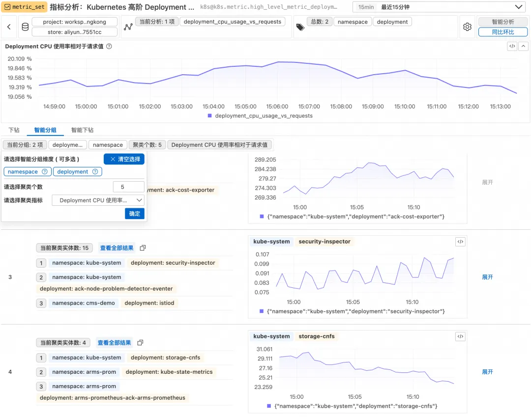 这个功能在容量规划、资源优化场景下特别有价值。比如分析大量实例的 CPU 使用率时,通过智能分组可以快速识别出高负载、中负载和低负载三类实例,进而针对性地进行资源调整。
