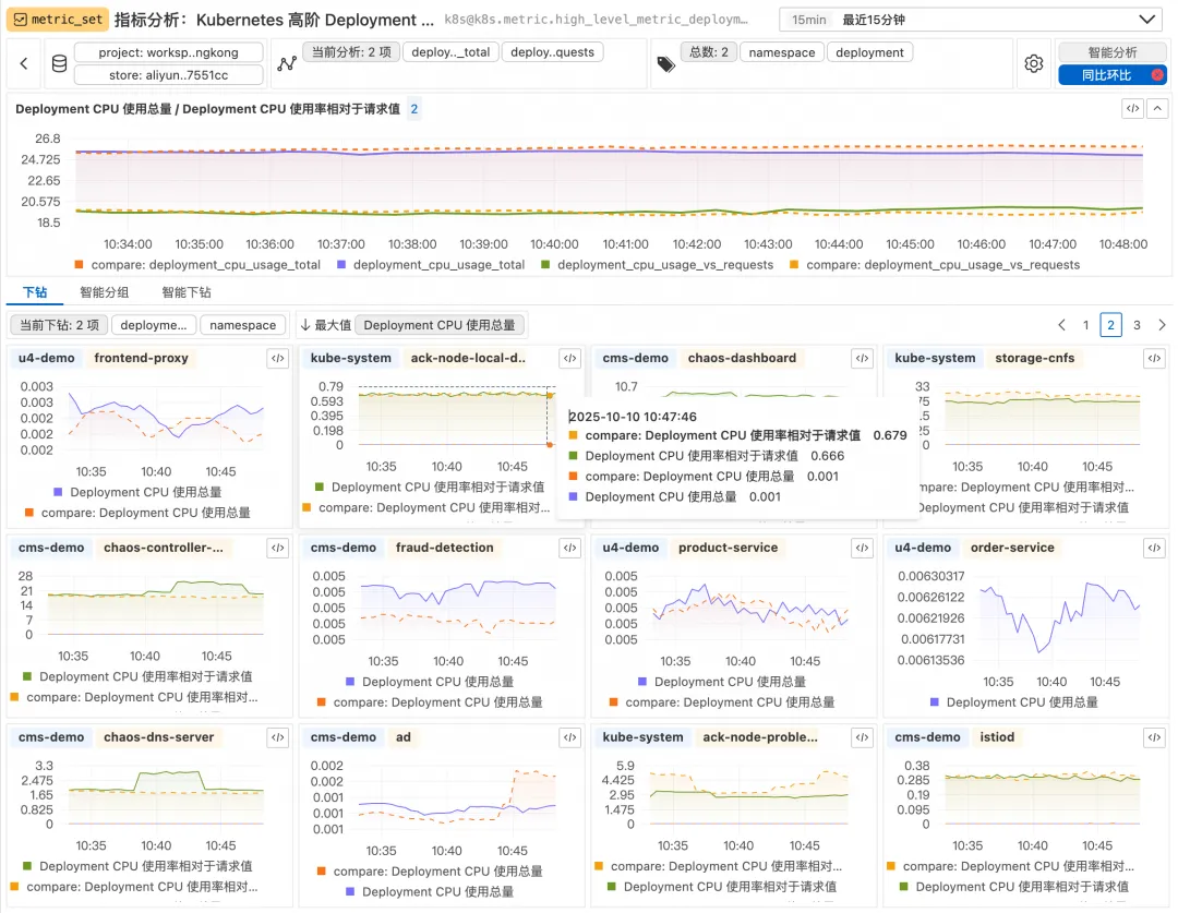 这个功能大大缩短了故障定位时间。在传统方式下,运维人员可能需要尝试十几种维度组合才能找到问题根源,而智能下钻只需几秒钟就能给出答案。