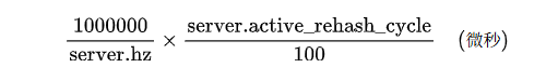 ● hz = 100, active-rehash-cycle = 1,上面计算结果为 100us 即 0.1ms。