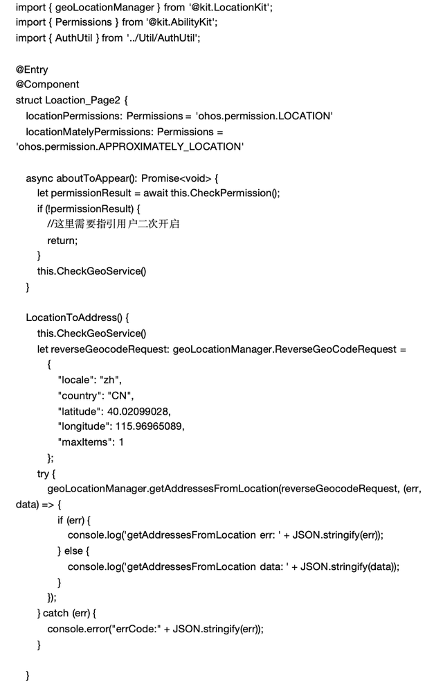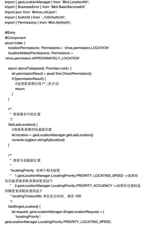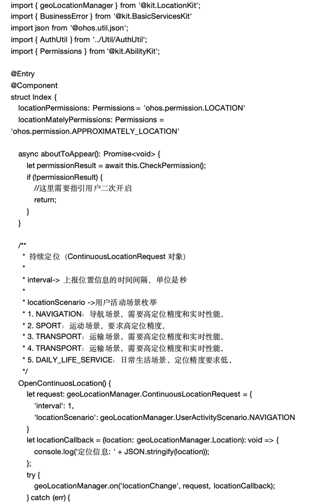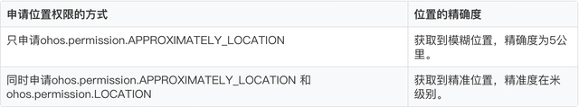 如果应用需要在后台运行时访问设备位置,还需要申请 ohos.permission.LOCATION_IN_BACKGROUND 权限。